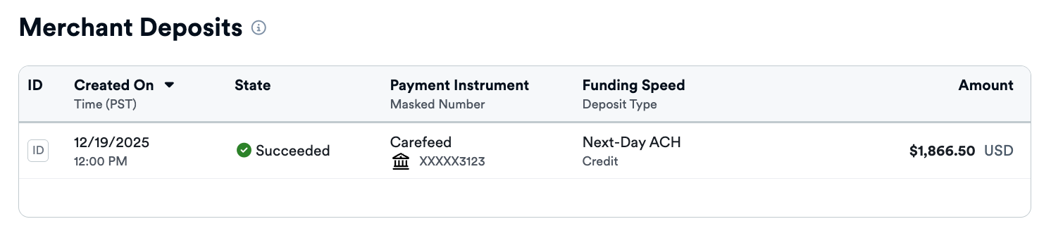 - Failed - The deposit did not go through, often due to incorrect bank information or a block by your bank. You may need to update your bank information or contact your bank.