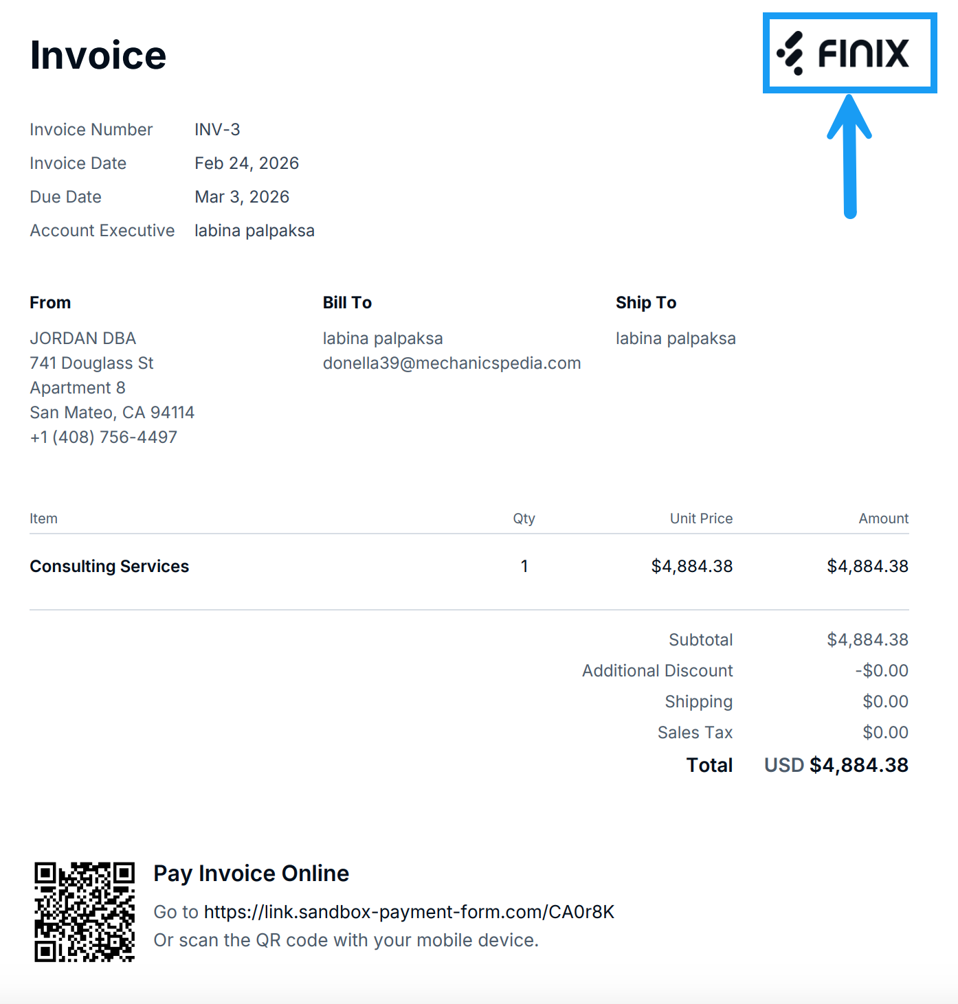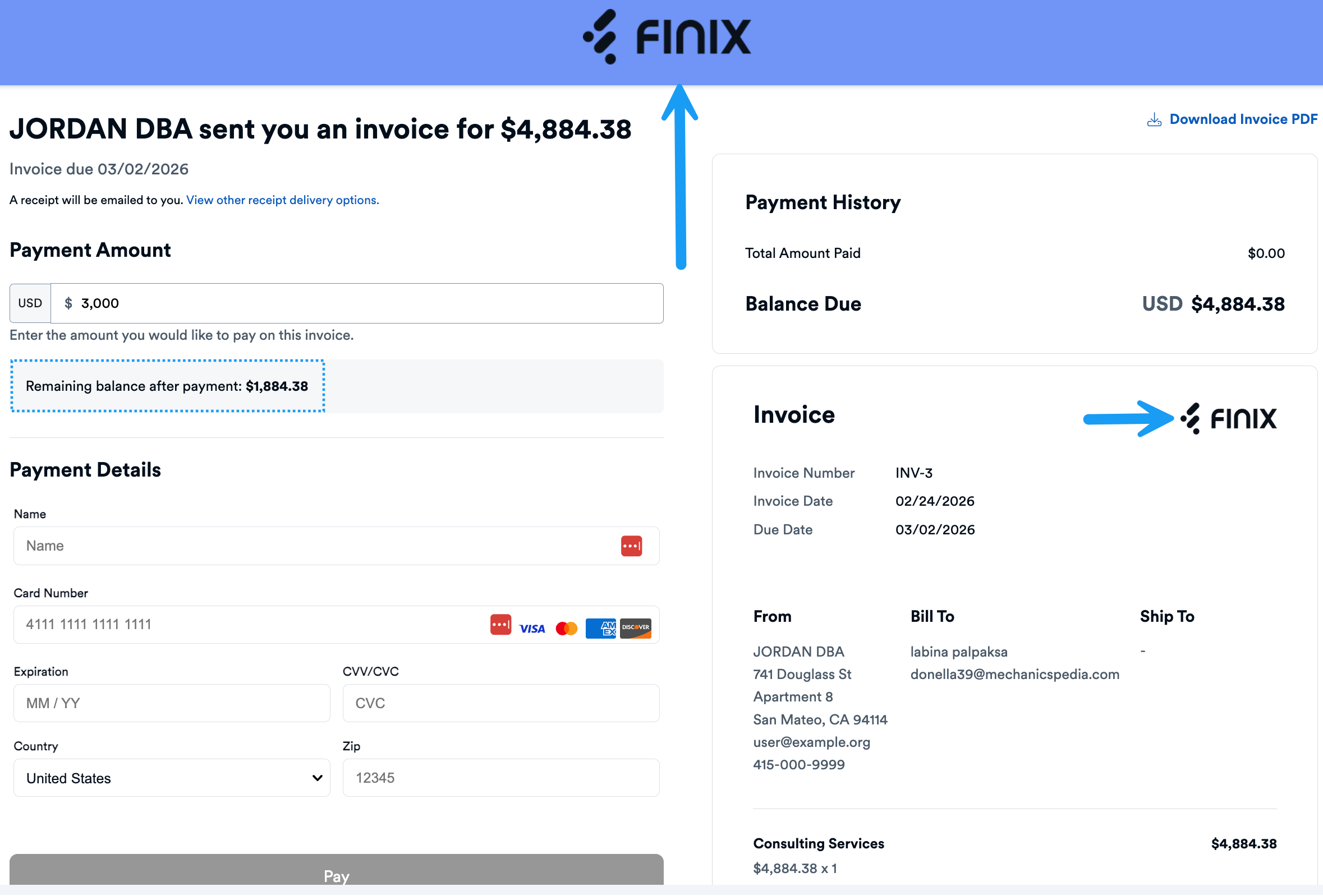 During invoice creation, you can personalize both the invoice and payment page. The invoice will only show your logo, while the payment page will display your logo and any other brand settings you choose.