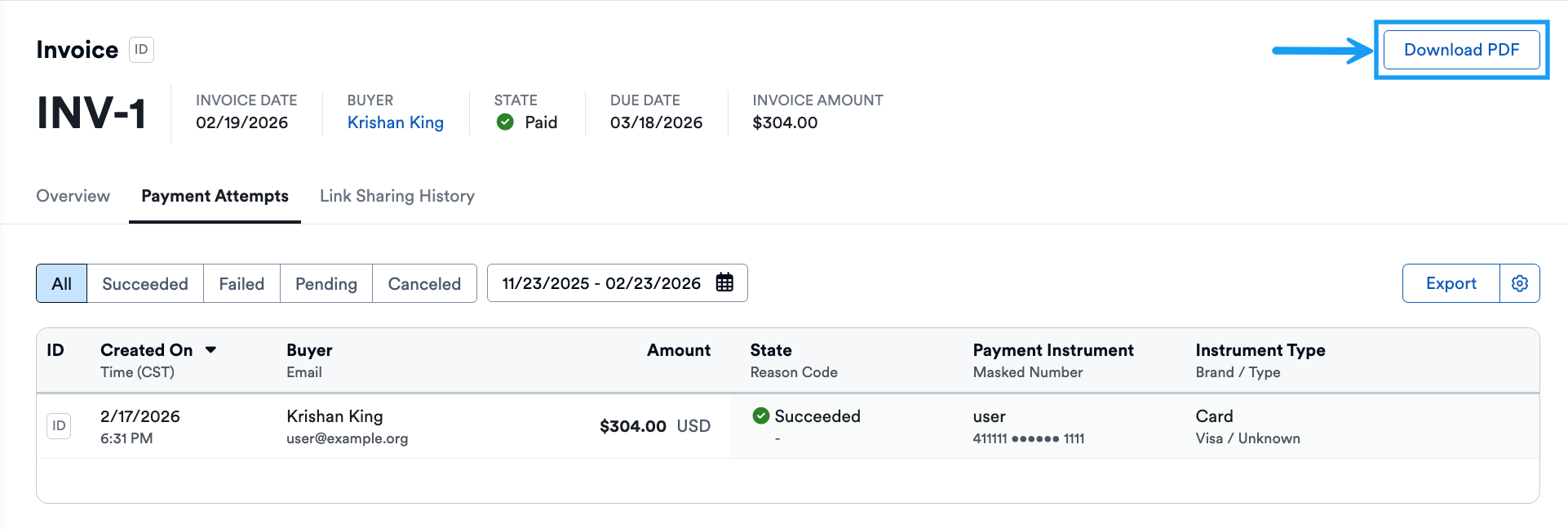- Export: Download payment attempt data for your records.