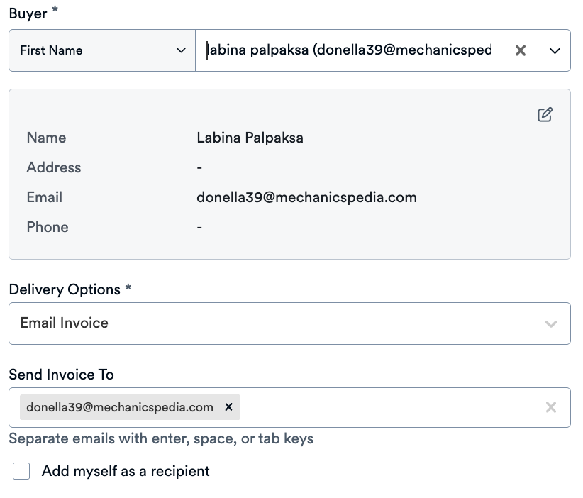 - Select a buyer or click + Add a Buyer if they are not in the system.