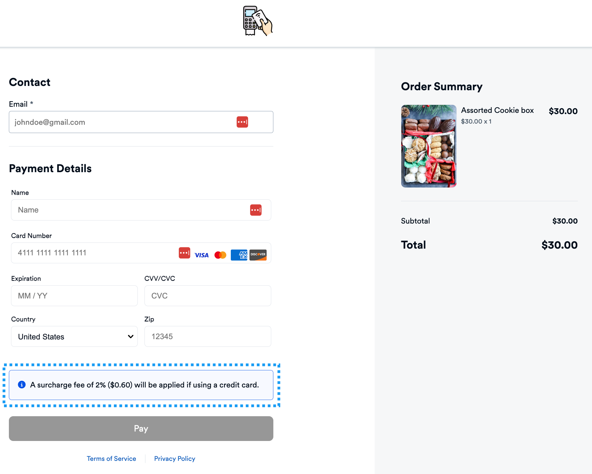 Buyers will see a notice that the payment will be surcharged and the exact amount.
