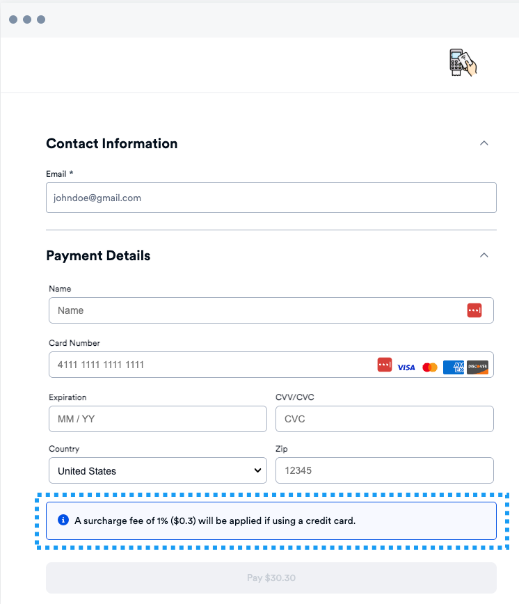 Surcharge fees are available to sellers to help cover the cost of processing payments in any environment.